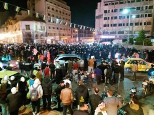 حشود جماهيرية في حمص احتفالاً بتوقيع الإتفاق على اندماج قوات سوريا الديمقراطية ضمن مؤسسات الجمهورية العربية السورية