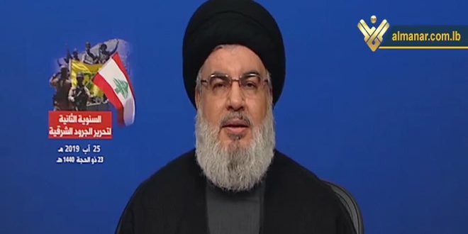 وشدد السيد نصر الله على أن سورية تسير اليوم بخطوات ثابتة نحو تحقيق النصر النهائي على الإرهاب بعد أن أفشل الجيش العربي السوري والمقاومة المخطط الذي أعد للمنطقة في العام 2011 وكان هدفه الحقيقي ضرب محور المقاومة والسيطرة على المنطقة وإعادة تقسيمها خدمة للعدو الإسرائيلي.