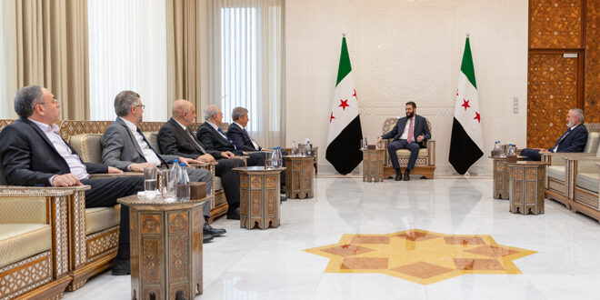 رئيس الجمهورية يستقبل عدداً من رجال الأعمال السوريين المقيمين في مصر أحدث الأخبارأخبار العروبةرئيسي في 22 نيسان , 2025 استقبل رئيس الجمهورية السيد أحمد الشرع في قصر الشعب بدمشق عدداً من رجال الأعمال السوريين المقيمين في جمهورية مصر العربية. شارك FacebookWhatsAppFacebook MessengerTelegramTwitter