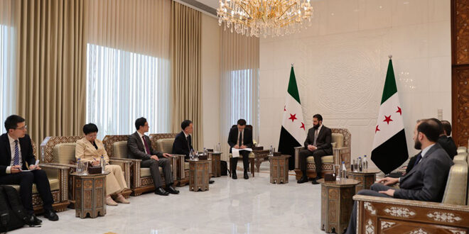 الرئيس الشرع يستقبل وفداً من جمهورية الصين الشعبية أحدث الأخبارأخبار العروبةرئيسي في 12 أيار , 2025 استقبل رئيس الجمهورية العربية السورية السيد أحمد الشرع وفداً من جمهورية الصين الشعبية برئاسة السيد تشين وي تشينغ المدير العام لإدارة شؤون غرب آسيا وشمال أفريقيا لدى وزارة الخارجية الصينية. شارك FacebookWhatsAppFacebook MessengerTelegramTwitter