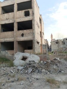 ولتسليط الضوء على الواقع الخدمي للحي وأهم الصعوبات التي يعاني منها الأهالي تواصلنا مع رئيس لجنة الحي ريمون سعد الذي قال : يبلغ عدد العائلات الموجودة في الحي حوالي 200 عائلة و رغم صعوبة الظروف والافتقاد لأبسط مقومات الحياة ، يشهد الحي عودة متزايدة لأهله المهجرين لاستعادة ما يمكن إنقاذه من ذكرياتهم المدفونة وسط الأنقاض المتراكمة و التي تم ترحيل جزء منها ,مؤكدا على ضرورة إزالتها وفتح الطرقات وإعادة تأهيلها من جديد وهذا يحتاج إلى جهود جبارة ، مشيرا أن نسبة الدمار بلغت في الحي 30% و تركزت في القسم الغربي منه وبالقرب من جامع العدنان.