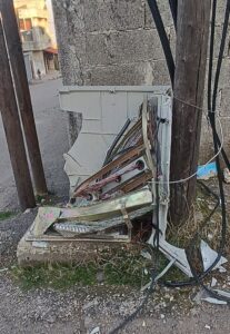 ولفت الأهالي أن الحارة الغربية من القرية لا توجد فيها خدمة هاتف نهائياً نتيجة سرقة جزء من الكبل المغذي لها وخروج علبة التوزيع عن الخدمة نتيجة السرقة والتخريب ولم يتم الإصلاح حتى تاريخه علماً أن عدد المشتركين يبلغ حوالي 450 مشتركاً ..