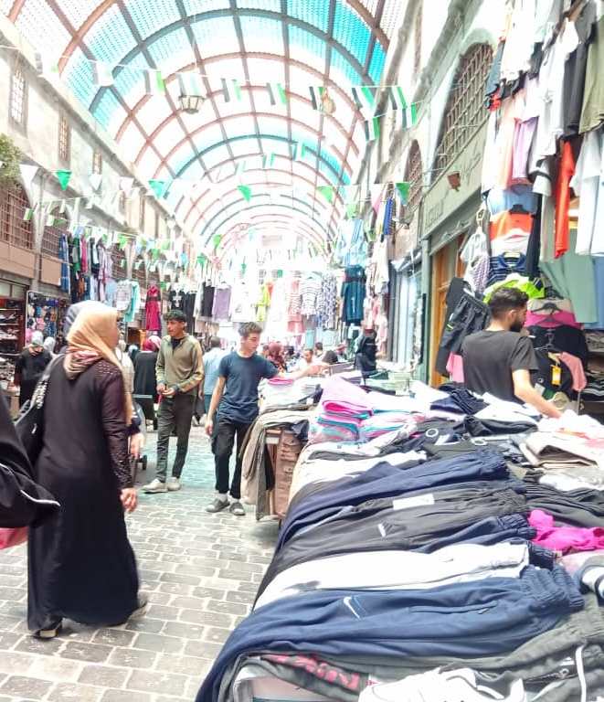 سامر صابرين أمين سر اللجنة التراثية قال : يحتفل تجار الأسواق بقدوم العيد،وذلك من خلال قيامهم بالزينة لكل السوق،وتحضير البضائع الخاصة فيها,حيث كل مهنة في السوق لها ترتيبها، وخاصة سوق الفرو،والنحاسين،والحلويات.