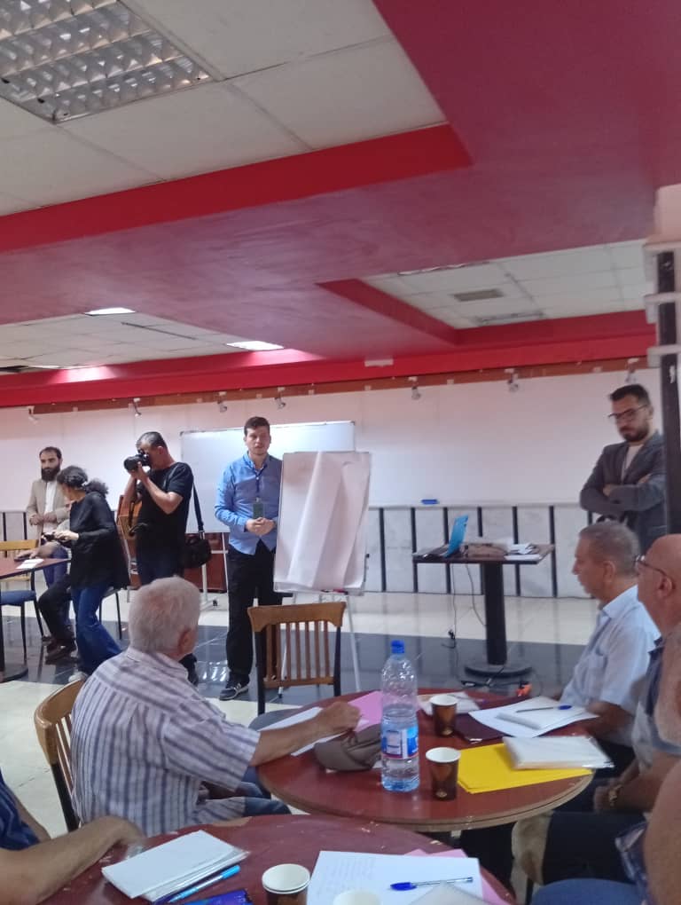 معتز الأبرش مسؤول فريق التطوير: نعمل حالياً على إعادة هيكلة اللجان الموجودة عن طريق توزيع إعلانات في كل حي وإجراء مقابلات مع المتقدمين مع مراعاة التنوع والتوزع الديموغرافي وتواجد الفئات الشابة وبعد إجراء المقابلات لاختيار الأعضاء تم تشكيل اللجان و الإعلان عنها. مع الإشارة أن بعض اللجان قيد التشكيل وسيعلن عنها قريباً، ومدة الورشة ثلاثة أيام حول التنسيق ومهارات التواصل.