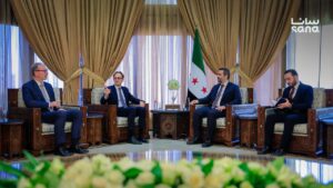 استقبل وزير الخارجية والمغتربين أسعد حسن الشيباني اليوم، توبياس تونكل، مدير شؤون الشرق الأوسط والشرق الأدنى وشمال أفريقيا في وزارة الخارجية الألمانية.