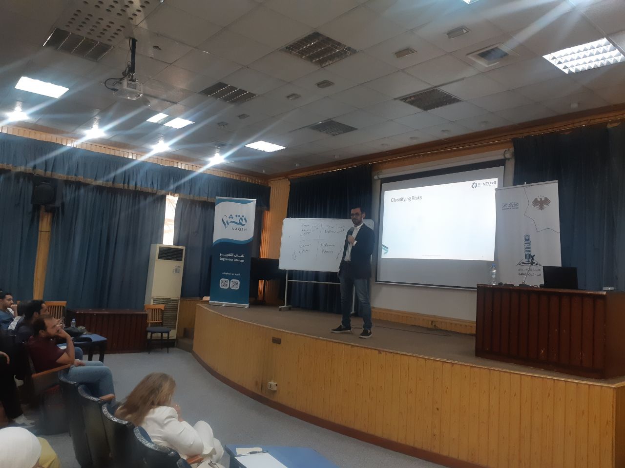 وشرح كيفية إدارة المخاطر أثناء ممارسة العمل اليومي وتقديم مبادرات جديدة لتخطي كل المعوقات بالعمل للاستفادة من الفرص الإيجابية من خلال الخبرات المكتسبة.