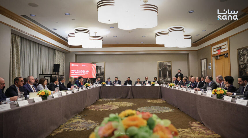 التقى رئيس الجمهورية العربية السورية أحمد الشرع نخبة من رجال الأعمال والمستثمرين وممثلي كبرى الشركات الأمريكية والعالمية، في جلسة الطاولة المستديرة التي نظمتها غرفة التجارة الأمريكية، على هامش أعمال الدورة الثمانين للجمعية العامة للأمم المتحدة في نيويورك.