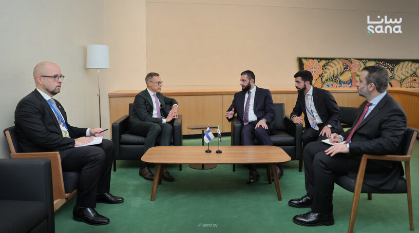 الرئيس الشرع يلتقي رئيس فنلندا على هامش أعمال الجمعية العامة للأمم المتحدة أحدث الأخبارأخبار العروبةرئيسي في 24 أيلول , 2025 التقى رئيس الجمهورية العربية السورية أحمد الشرع، رئيس جمهورية فنلندا ألكسندر ستوب، بحضور وزير الخارجية أسعد حسن الشيباني، وذلك على هامش أعمال الدورة الثمانين للجمعية العامة للأمم المتحدة في نيويورك. شارك FacebookWhatsAppFacebook MessengerTelegramTwitter