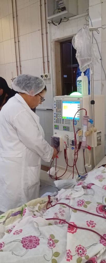 وبينت أن أجهزة ( الفريزينوس 4008) قديمة (منذ عام 2013) ، و من المفترض أن تعمل بحدود (20) ألف ساعة ، وبذلك تكون ساعات العمل مضاعفة ، مما يؤثر على فعاليتها، وهذا يؤدي إلى انخفاض كفاءة عمل الأجهزة، وهذا ينعكس سلباً على المريض، وعدد هذه الأجهزة خمسة ، بالإضافة إلى ثلاثة جديدة نوع( بيبراون) مقدمة من منظمة الصحة العالمية منذ حوالي الشهرين، وبالتالي أصبح العدد الإجمالي 8أجهزة بالإضافة إلى جهاز قيد الصيانة ، منوهة أن عدد الأجهزة لا يتناسب مع عدد المرضى الكبير ، ولايلبي الحاجة الفعلية والمرجوة.