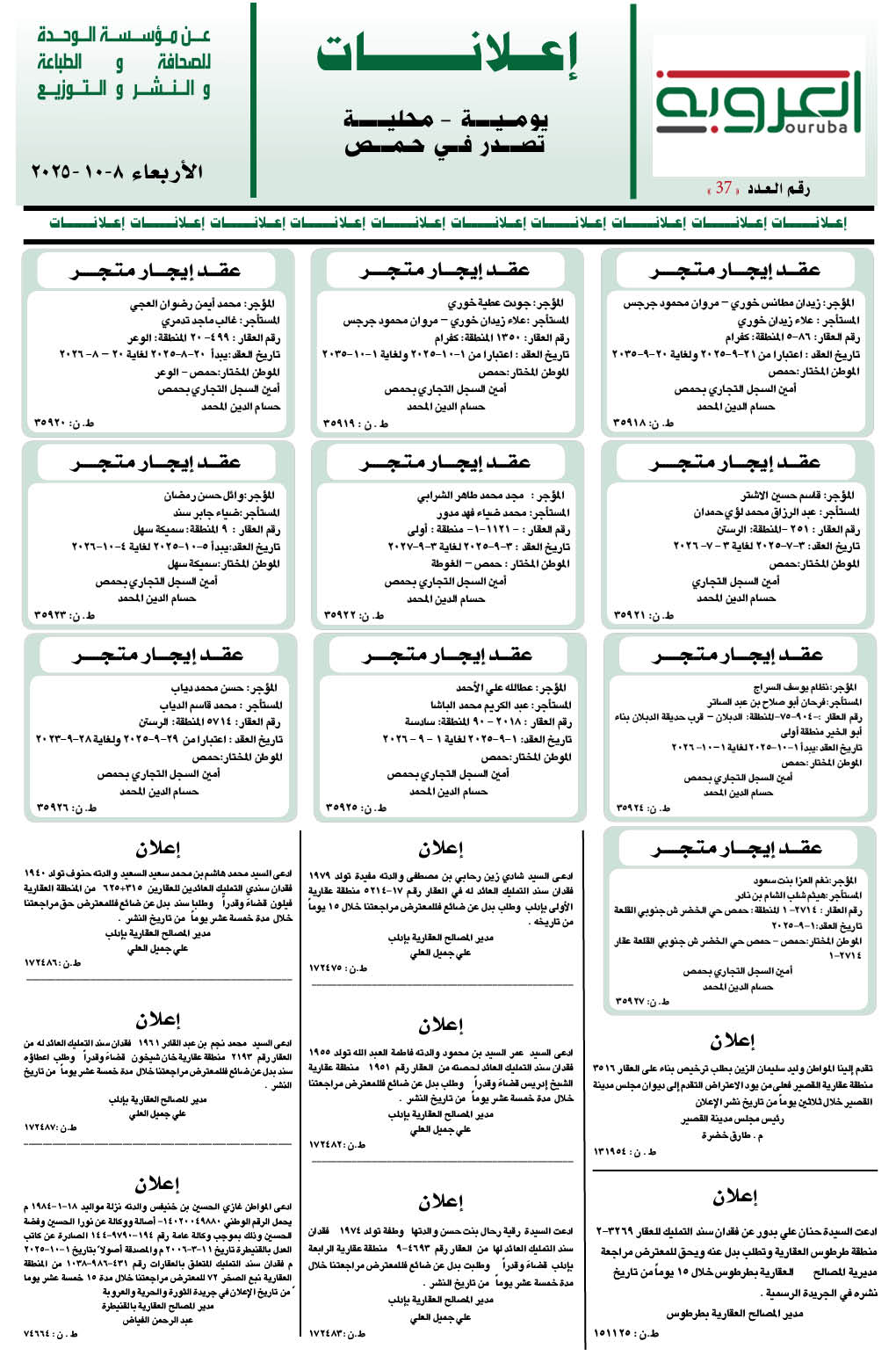 إعلانات العروبة إعلانات آخر تحديث 8 تشرين أول , 2025 شارك FacebookWhatsAppFacebook MessengerTelegramTwitter