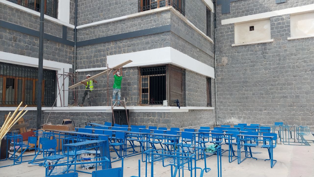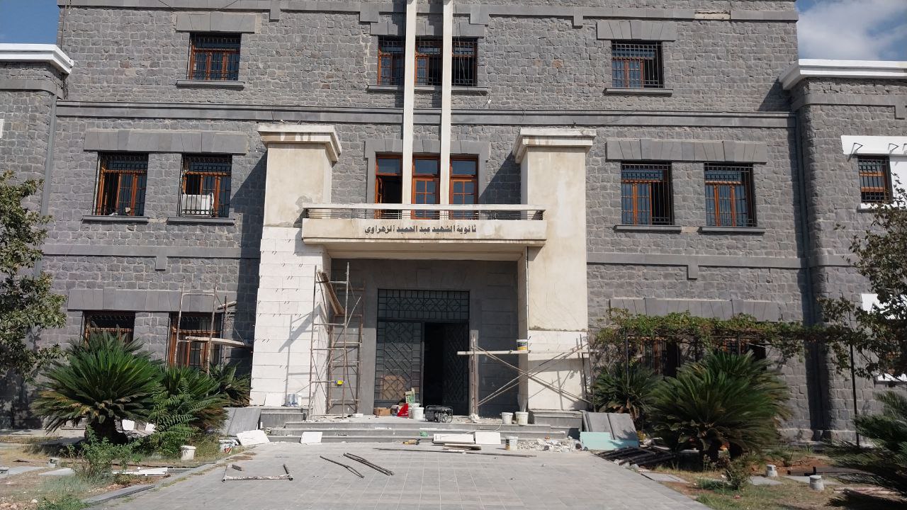 وعن أعمال الصيانة قال حسون أنها تتضمن عزل الأسقف وتركيب منظومة طاقة شمسية وصيانة الحمامات وشبكات المياه والصرف الصحي والكهرباء وصيانة المقاعد ودهان الجدران وتركيب قرميد وواجهات حجر في مدخل الثانوية الرئيسي,مشيراً إلى أن الأعمال في نهايتها .