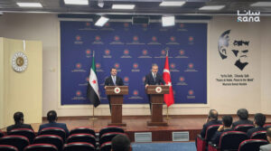 وأشار الشيباني خلال مؤتمر صحفي مع نظيره التركي هاكان فيدان في أنقرة اليوم، إلى الأجواء الإيجابية التي سادت الاجتماعات، وقال: إن هذا اللقاء يأتي بعد مرور عشرة أشهر على تحرير سوريا، وهي فترة تبدو قصيرة نسبياً في عمر الأمم والدول، لكنها كانت بالنسبة لنا حافلة بالإنجازات والتطورات التاريخية الملموسة داخلياً وخارجياً، فأوجزت بشهور قليلة إنجازات وأعمال تستغرق في الحالة الطبيعية أعواماً طويلة.