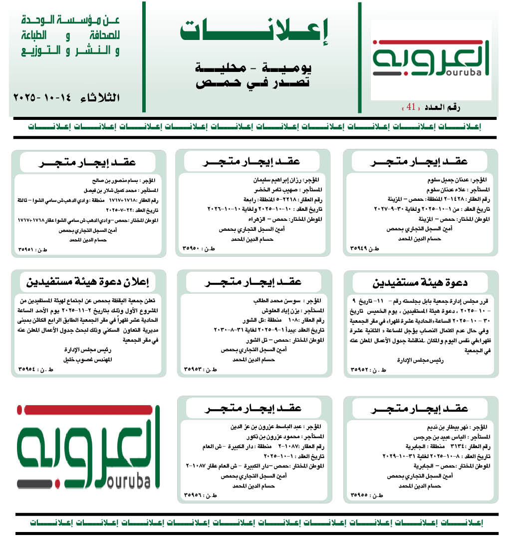 إعلانات العروبة إعلانات في 14 تشرين أول , 2025 شارك FacebookWhatsAppFacebook MessengerTelegramTwitter