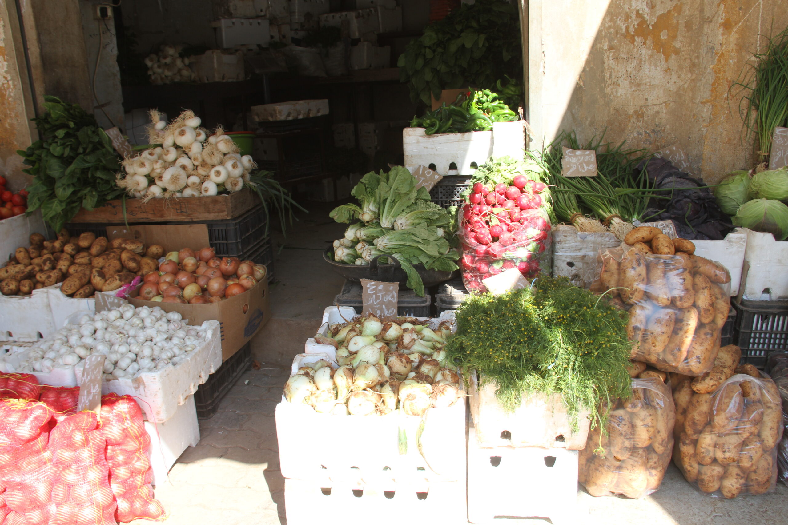 “العروبة” جالت في بعض أسواق المدينة واطلعت على الأسعار وكانت كالتالي: تراوح سعر كيلو البندورة مابين8 – 10 آلاف ليرة سورية، والخيار بين 7 – 8 آلاف، والبطاطا 6- 7 آلاف، في حين وصل سعر الثوم مابين 40-45 ألف ليرة، والفليفلة والبصل والباذنجان بين 6 و7 آلاف ليرة وجرزة البقدونس الواحدة 2000 ليرة .