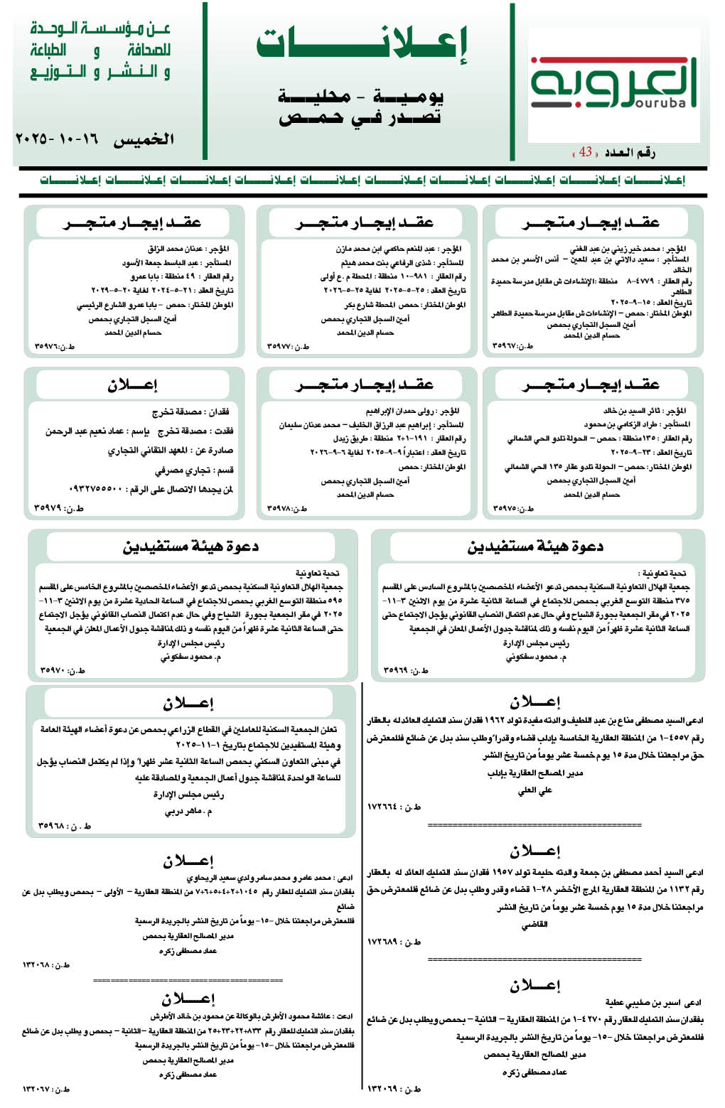إعلانات العروبة إعلانات في 16 تشرين أول , 2025 شارك FacebookWhatsAppFacebook MessengerTelegramTwitter