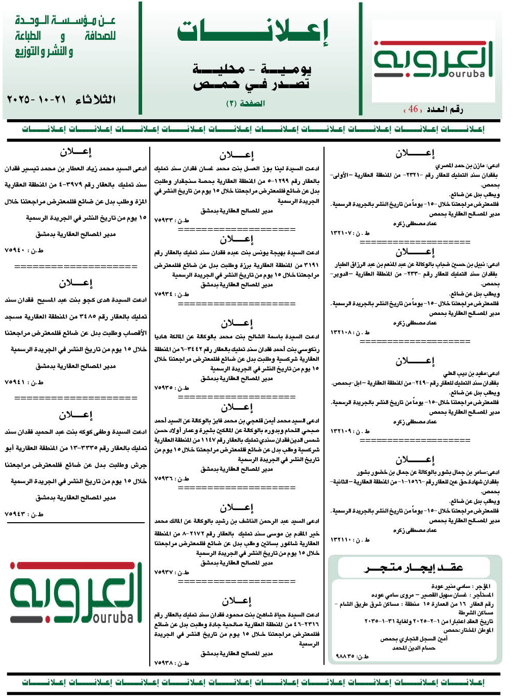 إعلانات العروبة إعلانات في 21 تشرين أول , 2025 شارك FacebookWhatsAppFacebook MessengerTelegramTwitter