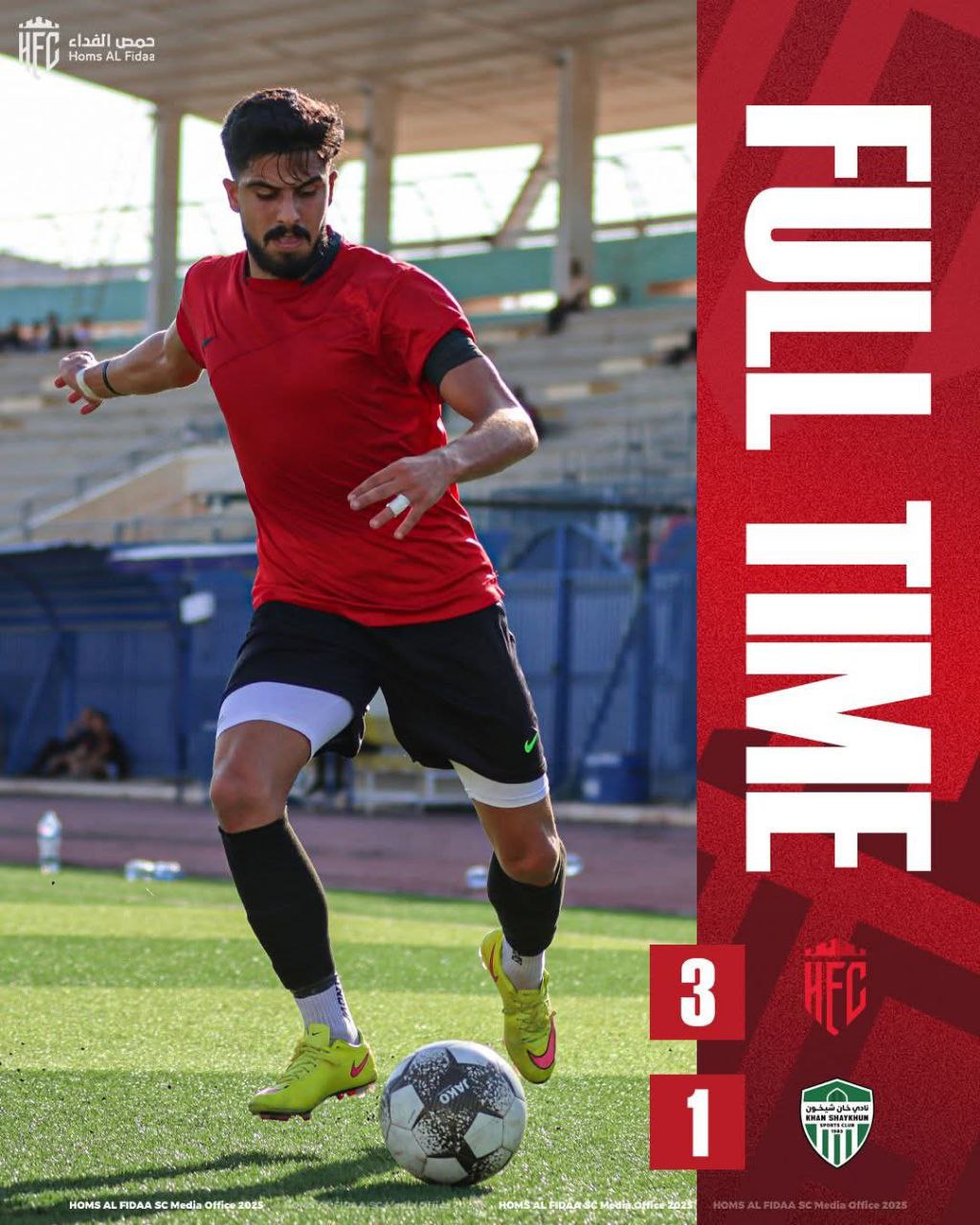 الفداء حمص يفوز على خان شيخون وديا رياضة في 22 تشرين أول , 2025 فاز فريق الفداء حمص لكرة القدم على نادي خان شيخون الصاعد حديثا لدوري الأضواء بثلاثة أهداف لهدف في المباراة التي جمعتهما على أرض الملعب البلدي في خان شيخون سجل للفداء محمد مالطا هدف وسامر مصطفى هدفين يوسف بدور شارك FacebookWhatsAppFacebook MessengerTelegramTwitter