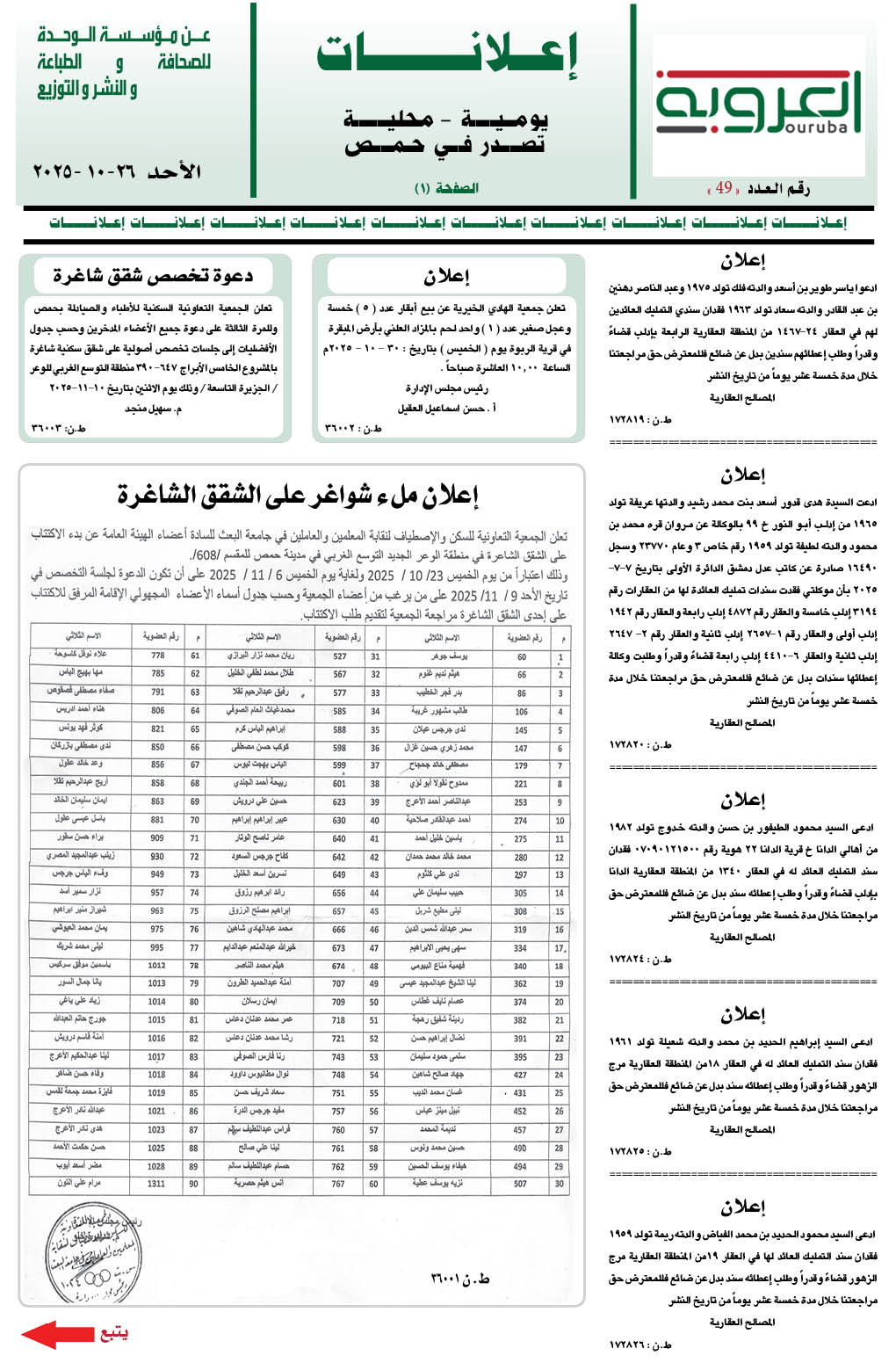 إعلانات العروبة إعلانات آخر تحديث 26 تشرين أول , 2025 شارك FacebookWhatsAppFacebook MessengerTelegramTwitter