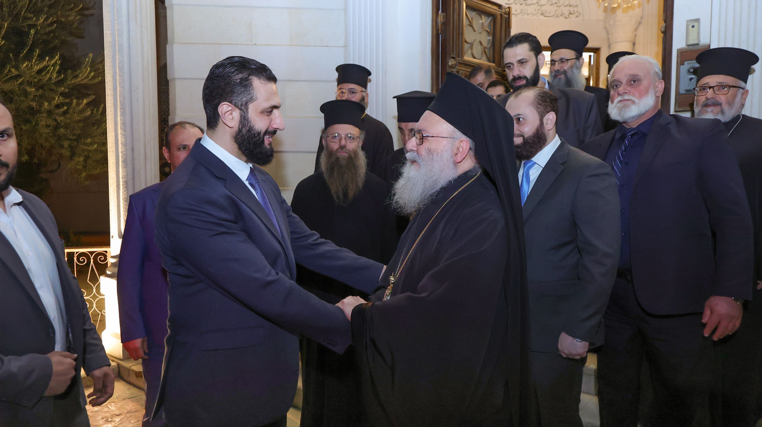 البطريرك يازجي قدم للرئيس الشرع نسخة من العهدة التي كتبها معاوية بن أبي سفيان بإملاء رسول الله ، والتي تربط الماضي بالحاضر،وتسقط كل المحاولات للنيل من الحالة الإنسانية التي كرسها الإسلام وهي تنعكس اليوم في صورة المجتمع السوري الذي يقف في وجه كل المحاولات للنيل من نسيجه عبر بث الفرقة والطائفية البغيضة بهدف زعزعة استقراره والنيل من وحدته الوطنية.