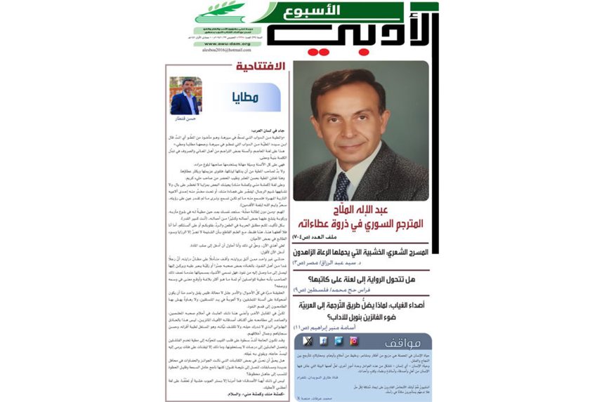 يجسد العدد الجديد من الأسبوع الأدبي، توجهاً واضحاً لسياسة تقدير الإنجازات الوطنية، من خلال تسليط الضوء على رموز الترجمة والإبداع وصون منجزات الثقافة السورية، في سياق تشجيع الأدباء والمثقفين على مواصلة الإبداع وترسيخ الرسالة الثقافية بمضامين تخدم المجتمع وتغني ذاكرته المعرفية.