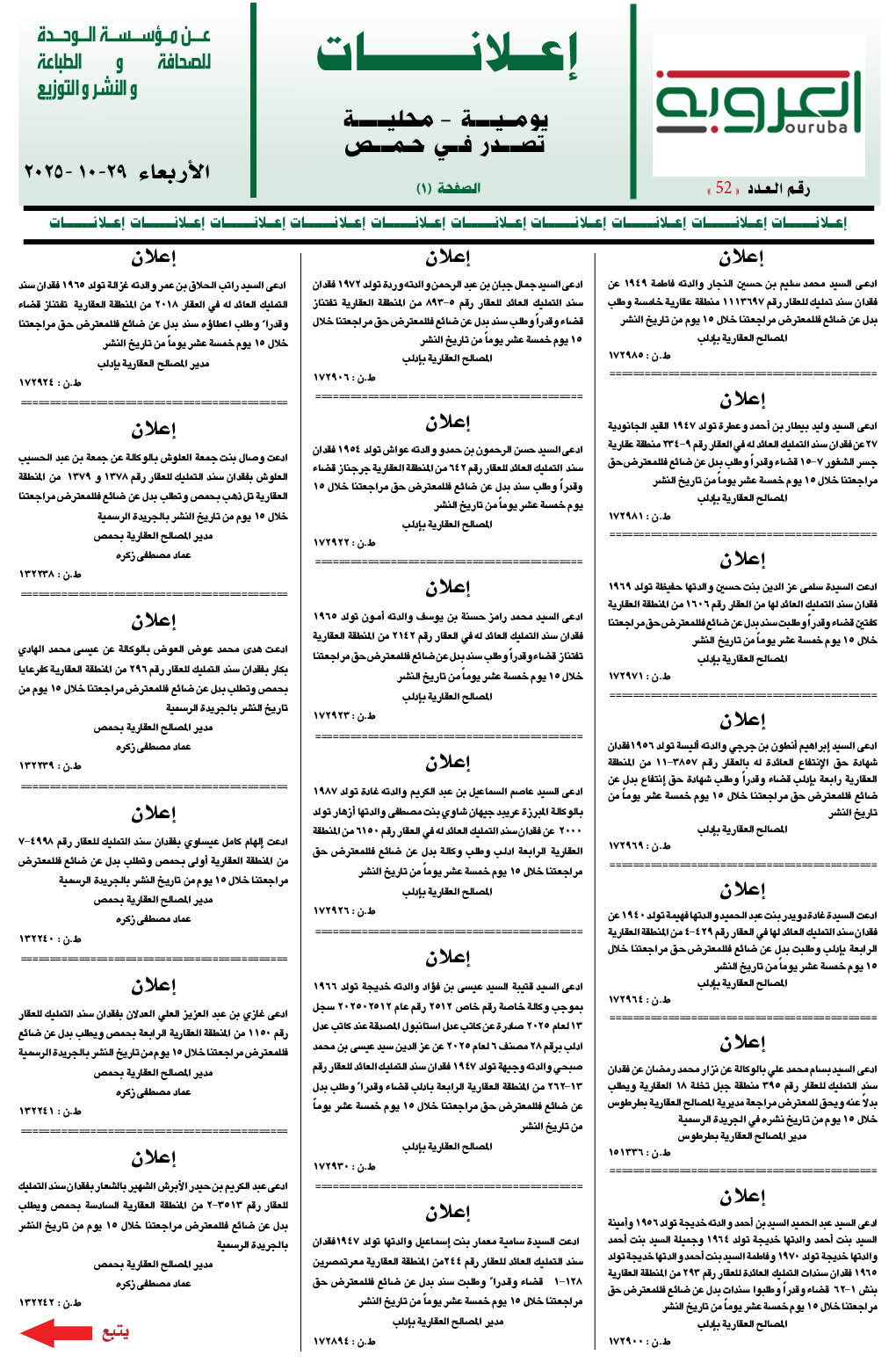 إعلانات العروبة إعلانات في 29 تشرين أول , 2025 شارك FacebookWhatsAppFacebook MessengerTelegramTwitter