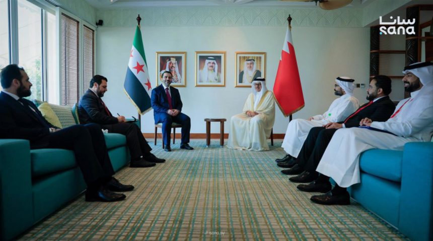 التقى وزير الخارجية والمغتربين أسعد حسن الشيباني نظيره البحريني عبد اللطيف بن راشد الزياني في العاصمة البحرينية المنامة على هامش منتدى حوار المنامة 2025.