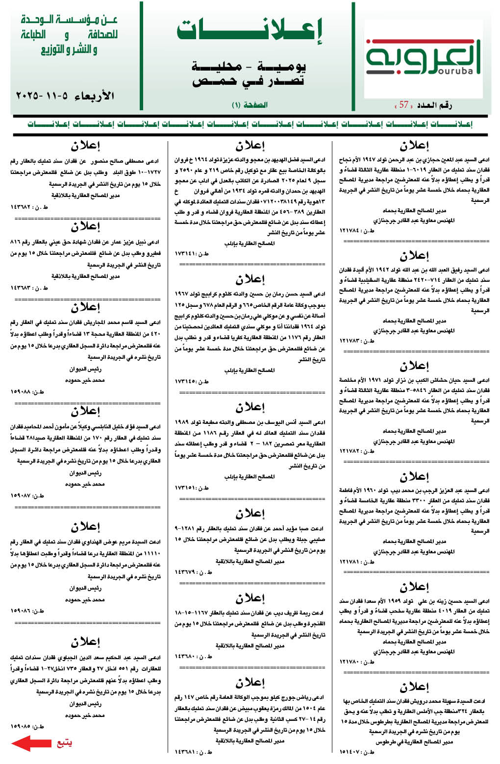 إعلانات العروبة إعلانات آخر تحديث 6 تشرين ثاني , 2025 شارك FacebookWhatsAppFacebook MessengerTelegramTwitter