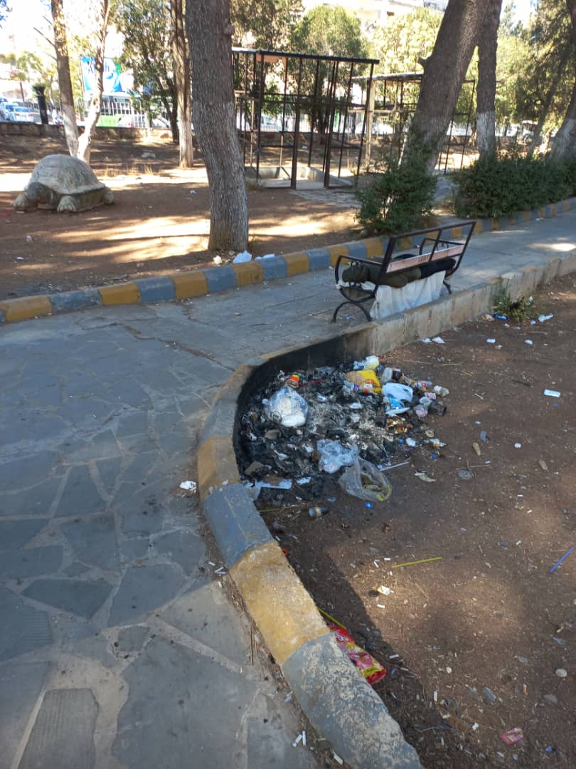 و الصور توضح واقع الحديقة المهمل و حاجتها إلى الصيانة والنظافة.