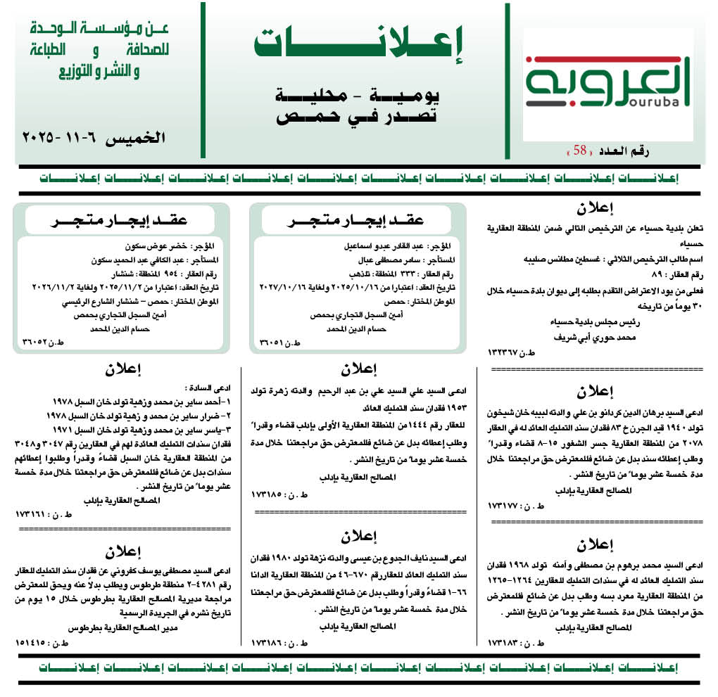 إعلانات العروبة إعلانات آخر تحديث 6 تشرين ثاني , 2025 شارك FacebookWhatsAppFacebook MessengerTelegramTwitter