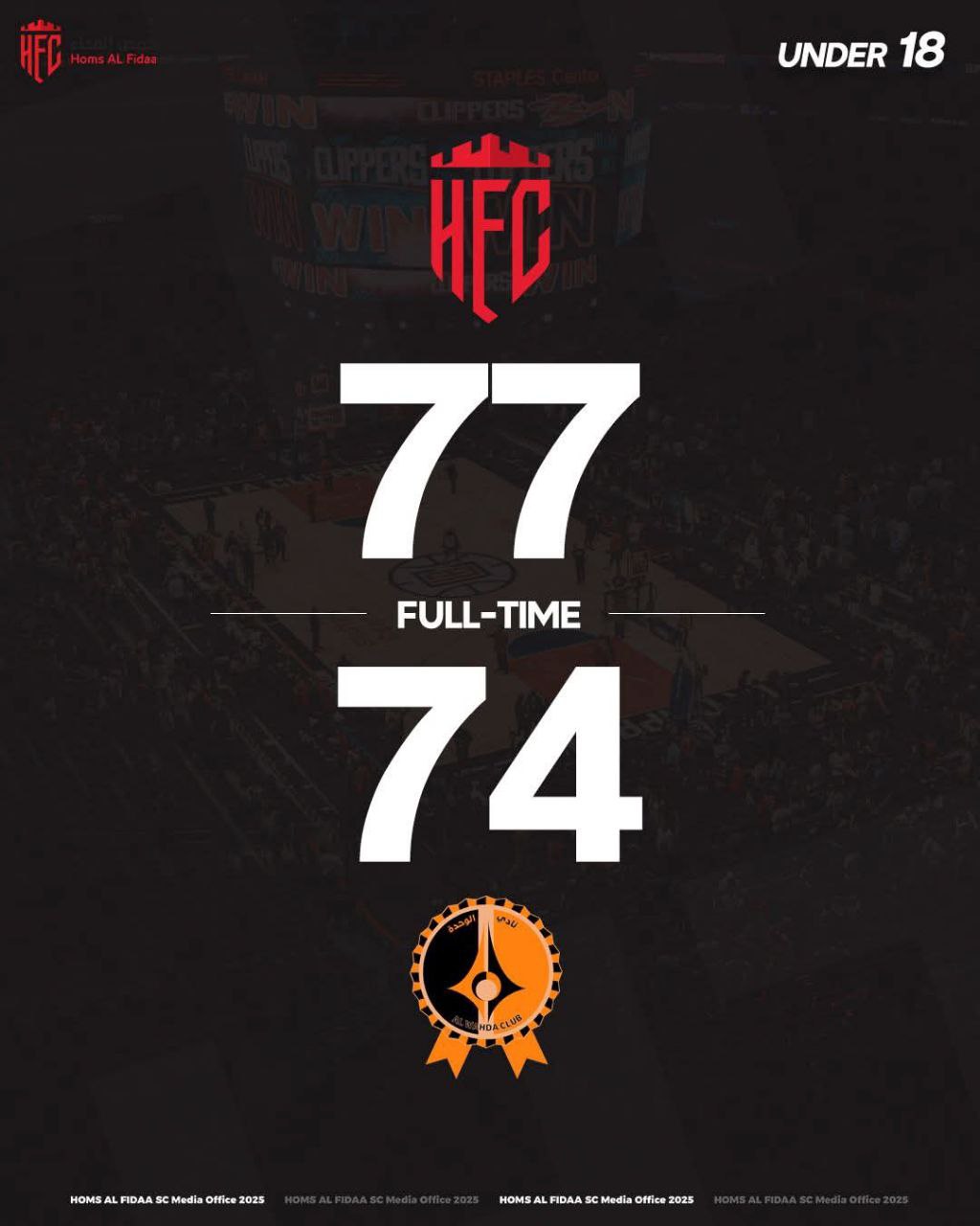 وفي النصف الثاني تمكن شباب حمص الفداء من حسم المباراة لمصلحتهم بفارق 3 نقاط بنتيجة 77 حمص الفداء مقابل 74 الوحدة .