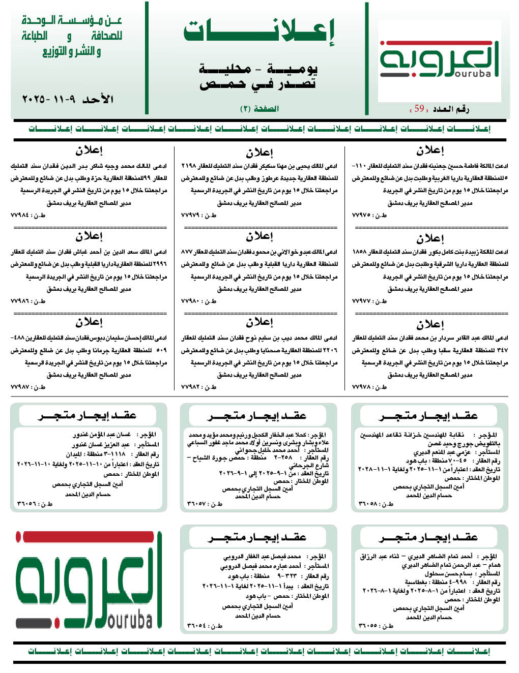 إعلانات العروبة إعلانات في 9 تشرين ثاني , 2025 شارك FacebookWhatsAppFacebook MessengerTelegramTwitter