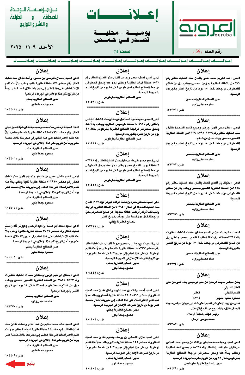 إعلانات العروبة إعلانات في 9 تشرين ثاني , 2025 شارك FacebookWhatsAppFacebook MessengerTelegramTwitter
