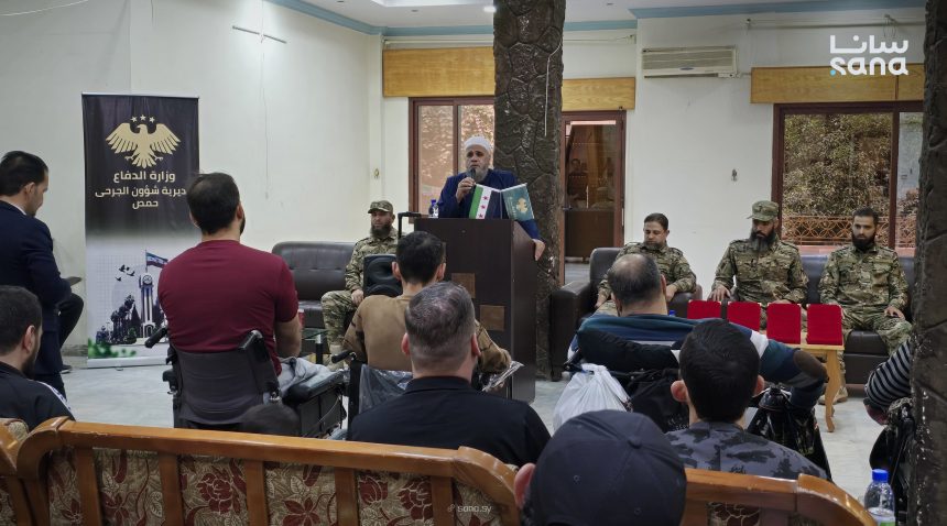 وخلال الحفل، عبّر مفتي حمص الشيخ سهل جنيد في كلمته عن تقديره لتضحيات الجرحى، مشيراً إلى شجاعتهم وصمودهم ودورهم المشرف، لافتاً إلى أن إصاباتهم تمثل وسام شرف للوطن، ومتمنياً لهم القوة والإيمان لتحقيق المزيد من الإنجازات