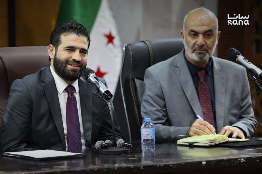 التقى وزير الداخلية أنس خطاب خلال زيارته إلى محافظة دير الزور بجمع من وجهاء وأعيان المحافظة، بحضور رئيس جهاز الاستخبارات العامة حسين السلامة، ومحافظ دير الزور غسان السيد أحمد.