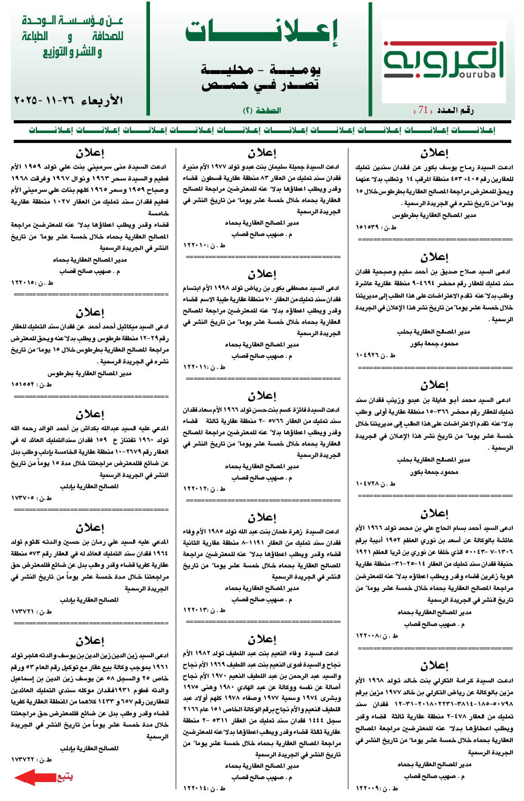 إعلانات العروبة إعلانات في 26 تشرين ثاني , 2025 شارك FacebookWhatsAppFacebook MessengerTelegramTwitter