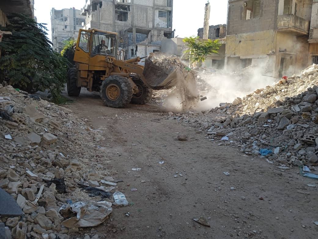 ذكر المهندس أمجد خضور مدير الأشغال بمجلس مدينة حمص أن ورشات المديرية تواصل تنفيذ أعمال ترحيل الأنقاض من الأحياء المتضررة بالمدينة، حيث وصلت كميات الأنقاض التي تم ترحيلها خلال الشهر الفائت 2000 متر مكعب، ويجري العمل حالياً بمحيط جامع خالد بن الوليد .