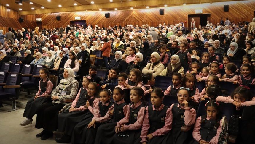 وقدّم أطفال مدرسة الرسالة فقرات أدبية وفنية وغنائية، جسدت قيم الانتماء والهوية الوطنية والفرح بالنصر السوري، ولاقت تفاعلاً كبيراً من الحضور في مدرجات المسرح.