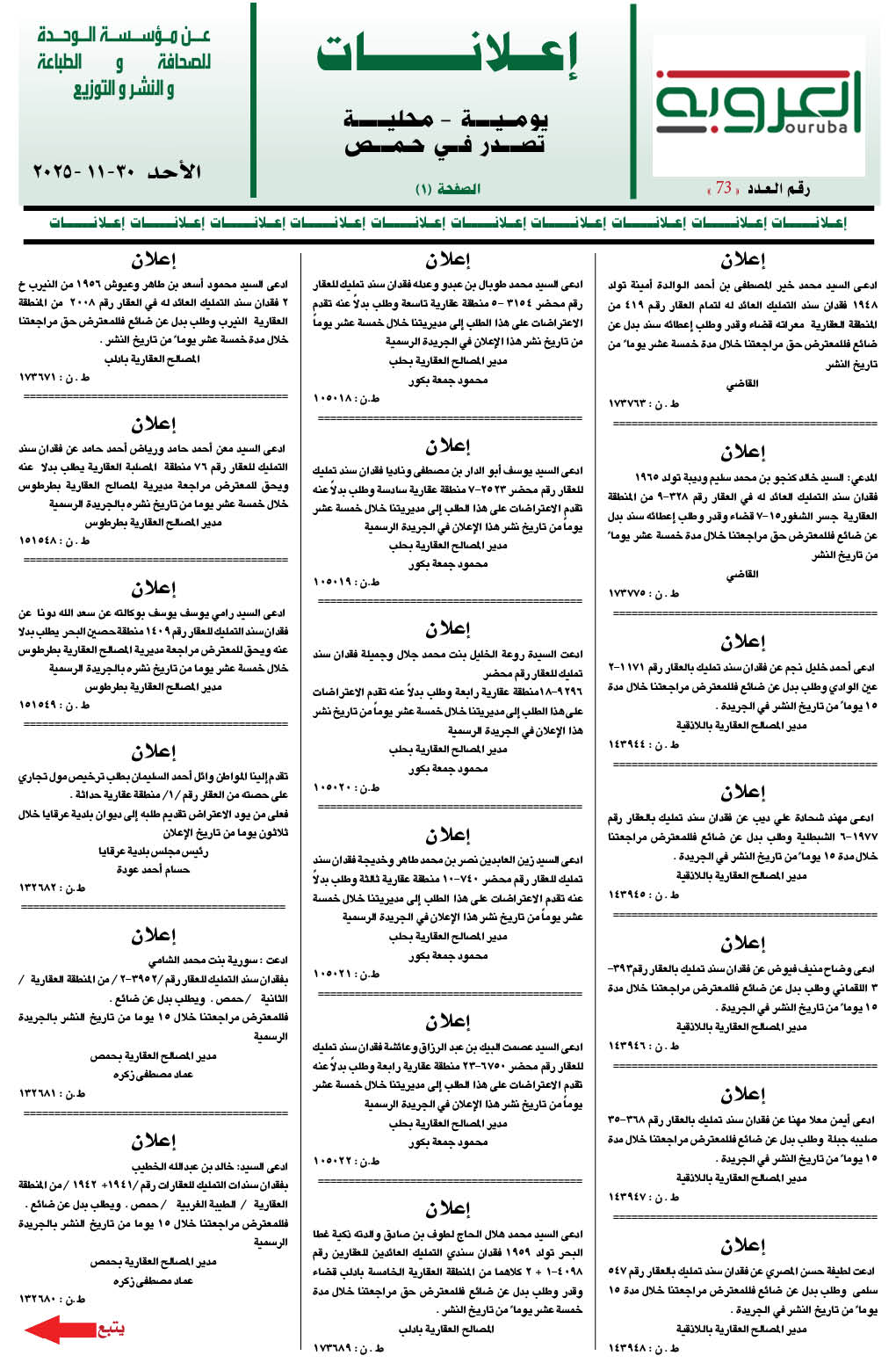 إعلانات العروبة إعلانات آخر تحديث 30 تشرين ثاني , 2025 شارك FacebookWhatsAppFacebook MessengerTelegramTwitter