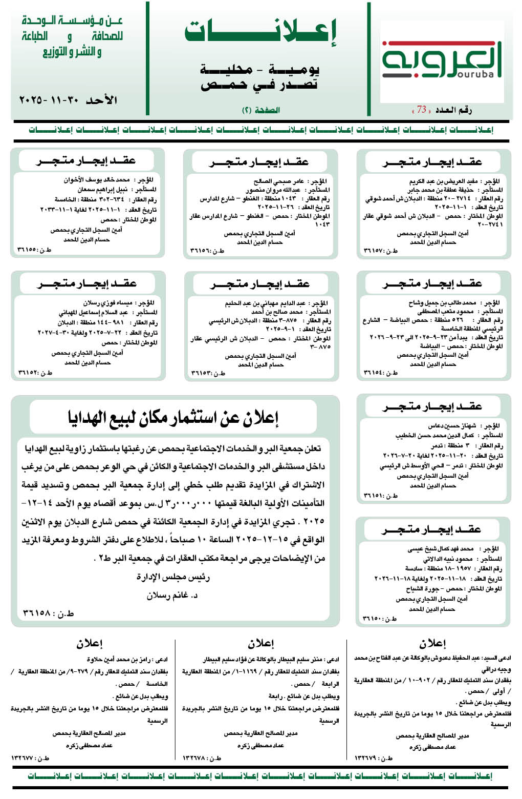 إعلانات العروبة إعلانات في 30 تشرين ثاني , 2025 شارك FacebookWhatsAppFacebook MessengerTelegramTwitter