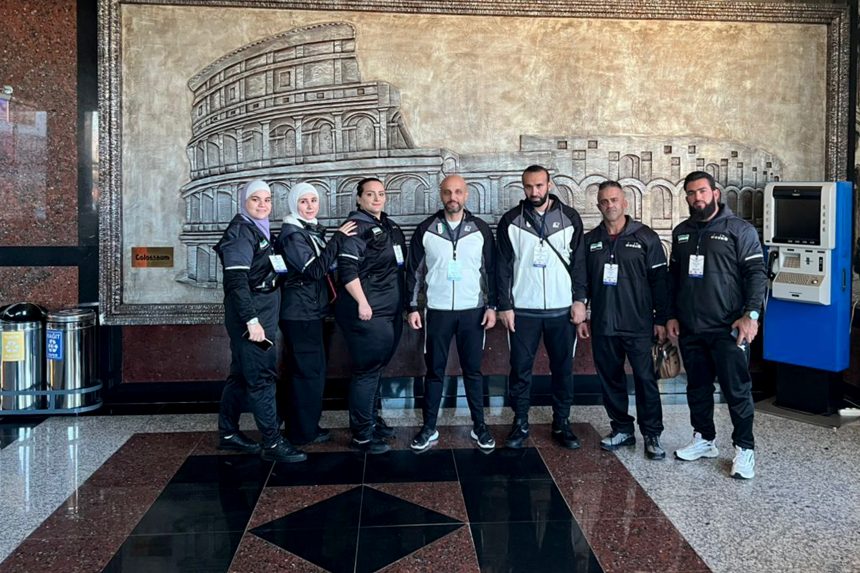 وتتألف بعثة منتخبنا المشارك بالبطولة من بلال بحصاص رئيساً للبعثة وحكماً، وعمر المصري إدارياً ومدرباً واللاعبين: عمير بكور وأيهم برغوث، واللاعبات: تغريد أبو الريش وإسراء المصري وميريام حنون.
