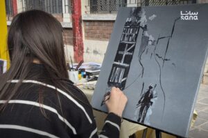 ومن بين التجارب المشاركة، قدّمت بانا الصبّاغ لوحة بعنوان “التطلع إلى الحرية” ضمن قسم الرسم الحي، موضحة أن عملها يحكي المراحل التي مرّ بها السوريون حتى نالوا حريتهم.