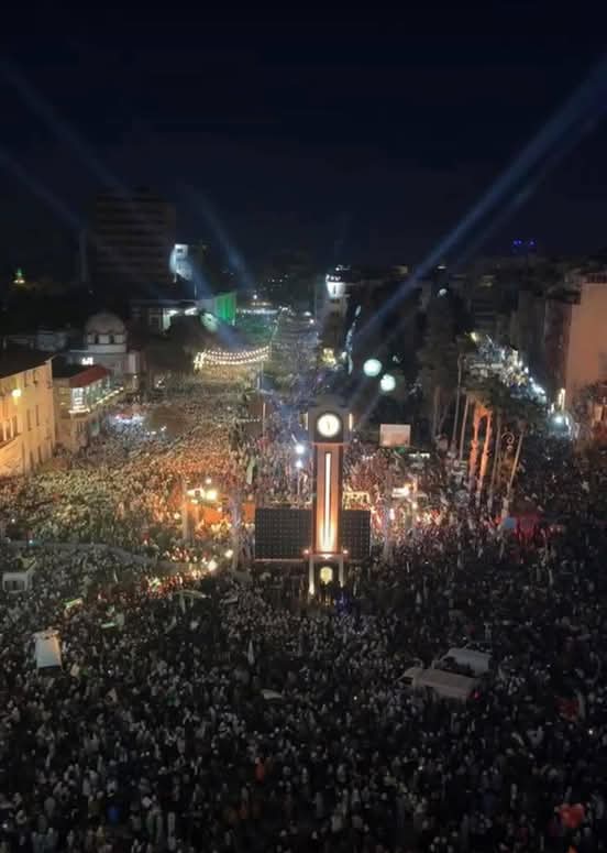 شهدت ساحة الساعة الجديدة بمدينة حمص احتفالية شعبية حاشدة مساء اليوم، حيث اكتظت بالمواطنين الذي توافدوا لإحياء ذكرى التحرير وانتصار الثورة السورية.