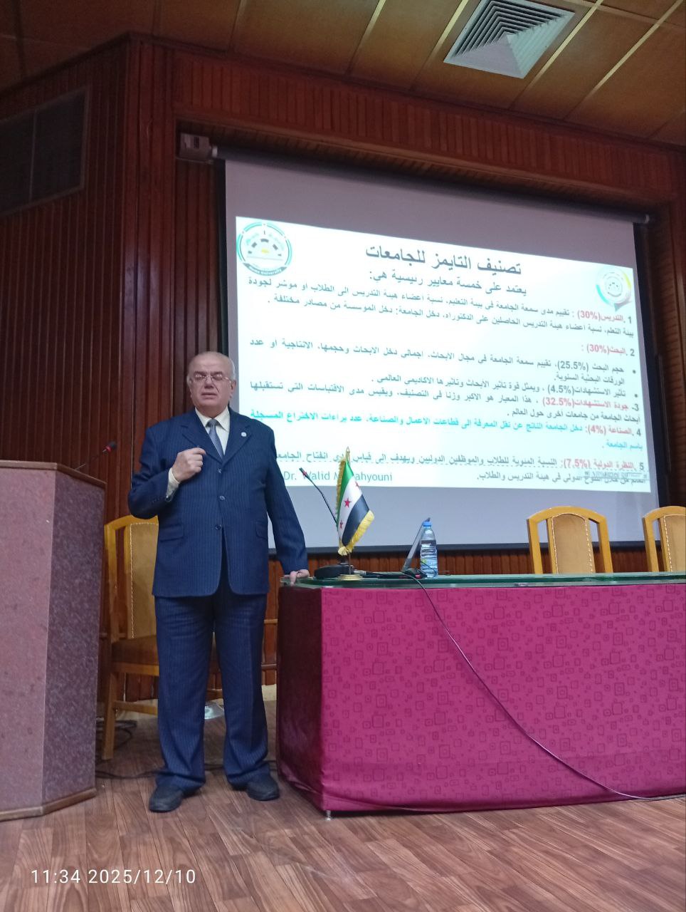أقام مركز ضمان الجودة والاعتمادية بجامعة حمص محاضرة عن إجراءات التصحيح لرفع تصنيف الجامعة في إطار معايير الجودة، للدكتور وليد صهيوني مدير مركز ضمان الجودة والاعتمادية بالجامعة .