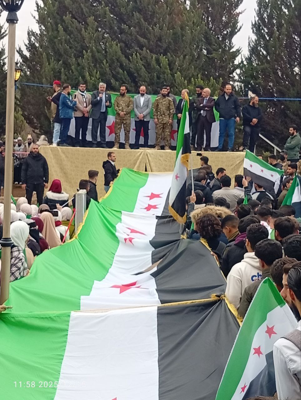 تلاها احتفال كبير في ساحة الجامعة والتي قدمت من خلاله كلمات تحمل معانٍ وقيمٍ، عن الثورة السورية، وأغاني الثورة التي صدحت بصوت نزار الزبن التي شاركه فيها طلاب الجامعة في ذكرى التحرير الأولى.