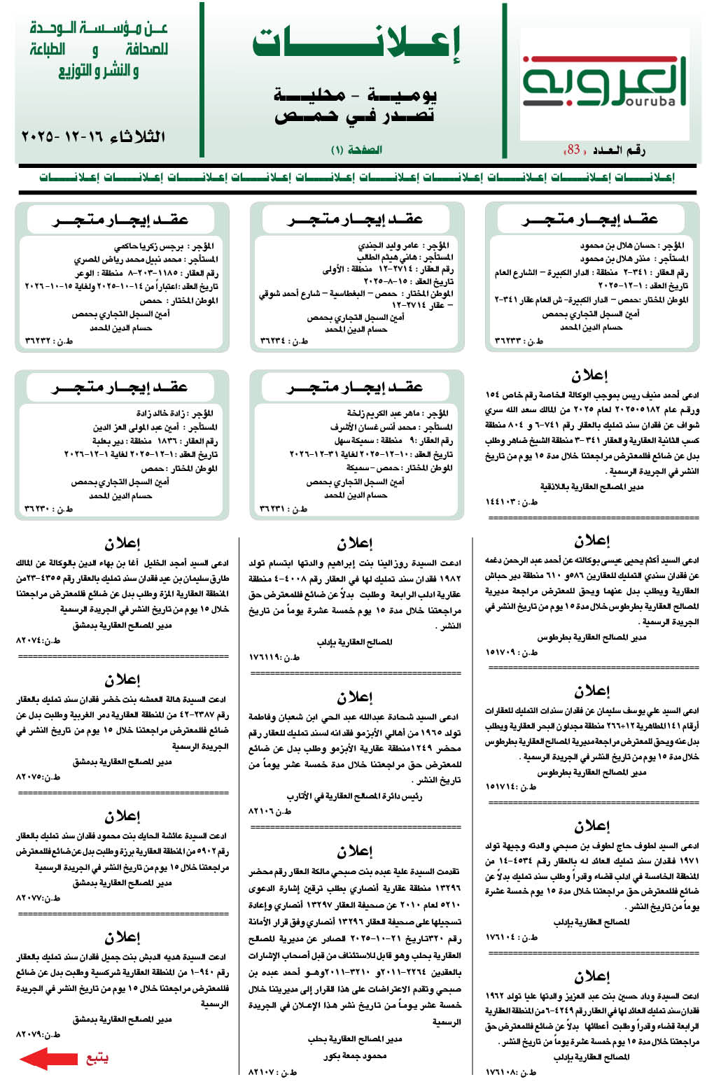 إعلانات العروبة إعلانات في 16 كانون أول , 2025 شارك FacebookWhatsAppFacebook MessengerTelegramTwitter