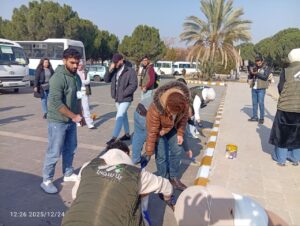 سدرة شتورة مسؤولة تنسيق حملة حمص بأيدينا أنظف: في نشاط اليوم تشارك عدة فرق تطوعية مع طلاب الجامعة من أجل نشر حملات التوعية سواء على مستوى الجامعة أو المجتمع بأكمله.