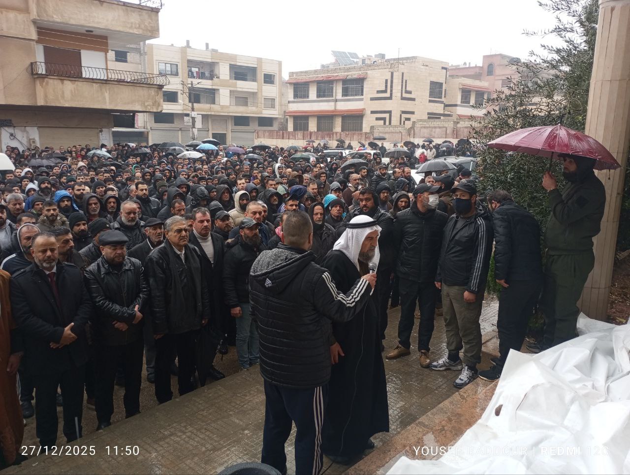 إمام مسجد الإمام علي بن أبي طالب الذي أم صلاة الجنازة الشيخ محي الدين سلوم أكد على أهمية درء الفتنة والتصدي لمحاولات أعداء الوطن ببث التفرقة الطائفية بين أبنائه, مشددا على التمسك بالوحدة الوطنية .