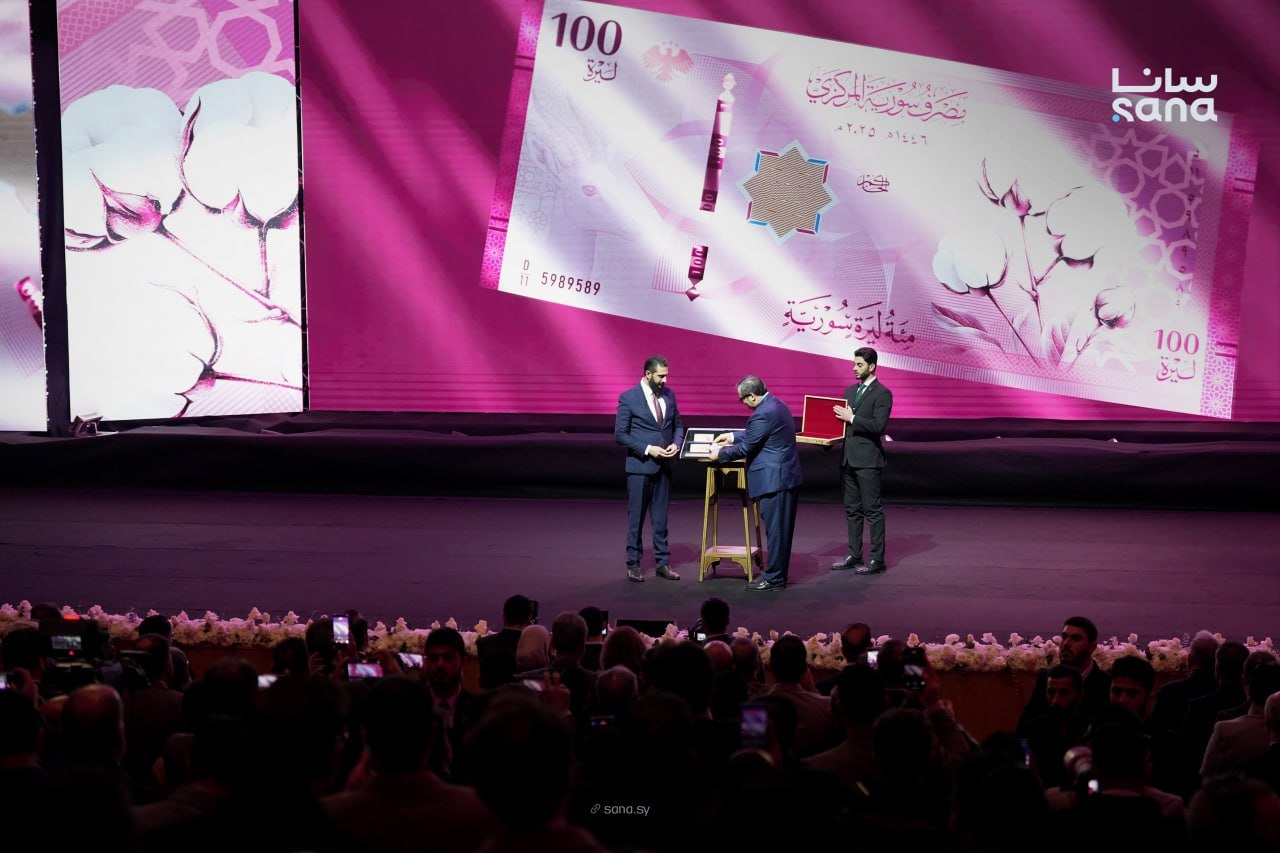 وكان الرئيس أحمد الشرع وحاكم مصرف سوريا المركزي عبد القادر الحصرية أطلقا أمس العملة السورية الجديدة، وذلك خلال حفل بقصر المؤتمرات في دمشق حضره العديد من الوفود الرسمية والشعبية.
