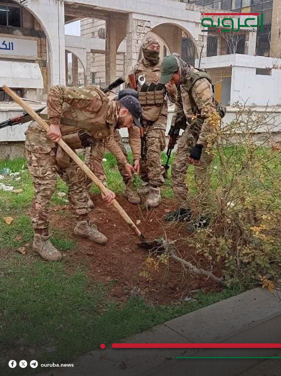 نفذت الفرقة 52 التابعة لوزارة الدفاع اليوم حملة تشجير في عدد من المواقع بمدينة حمص، وذلك ضمن فعالية أطلقتها وزارة الدفاع تحت شعار “لكل جندي شجرة”، في إطار الجهود الرامية إلى إعادة تأهيل المساحات الخضراء التي تعرضت للتخريب والقطع في عهد النظام البائد.
