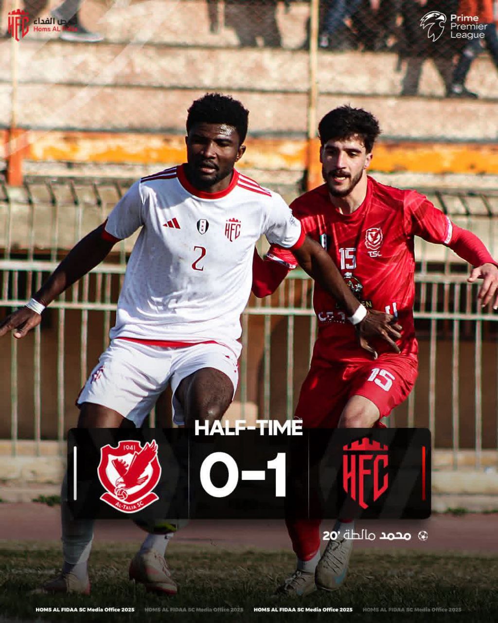 وسجل هدف حمص الفداء محمد مالطة في الدقيقة 20 من زمن الشوط الأول